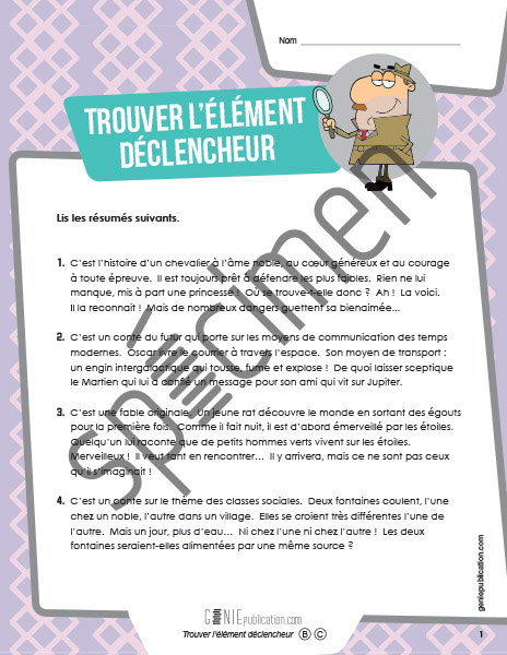 L'élève s'exerce à trouver l'élément déclencheur à partir de résumés de textes.