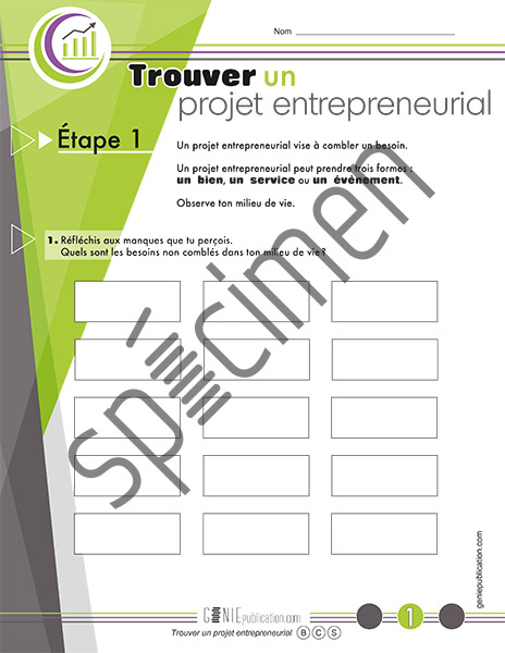 Première étape dans l'élaboration d'un projet entrepreneurial en classe ou en groupe pour une entreprise scolaire.