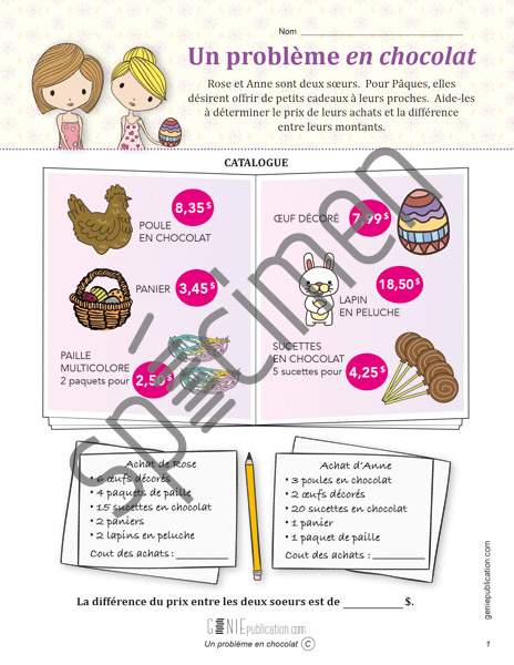 L'élève doit trouver le cout total des achats des deux sœurs et la différence entre les deux.