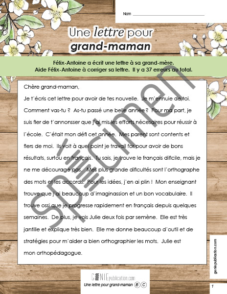 L'élève doit trouver des erreurs dans un texte.