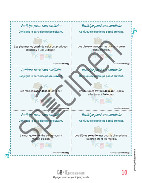 - 108 cartes de questions sur les participes passés.