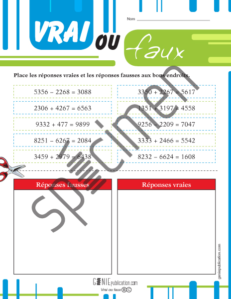 L'élève doit vérifier les calculs, les découper et les coller aux bons endroits.