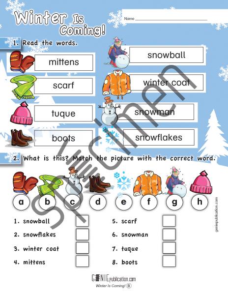 L'élève doit associer des mots de vocabulaire aux illustrations correspondantes.